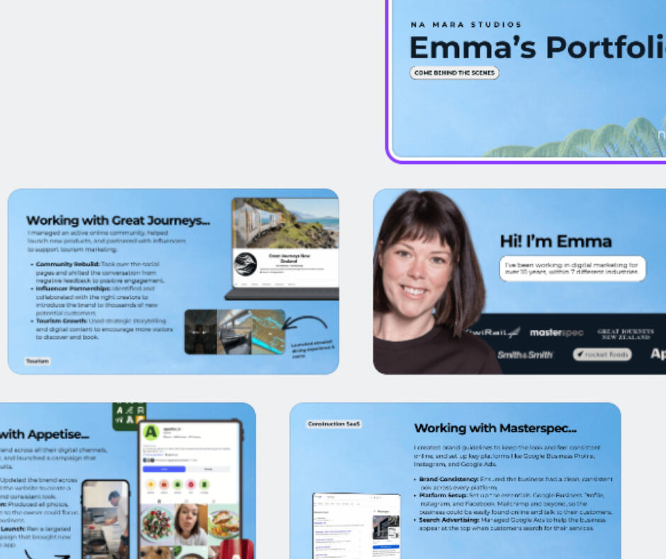 From cafés and vineyards to community markets and beyond, Na Mara Studio helps small businesses show up online in a way that feels true to who they are, while moving the needle.